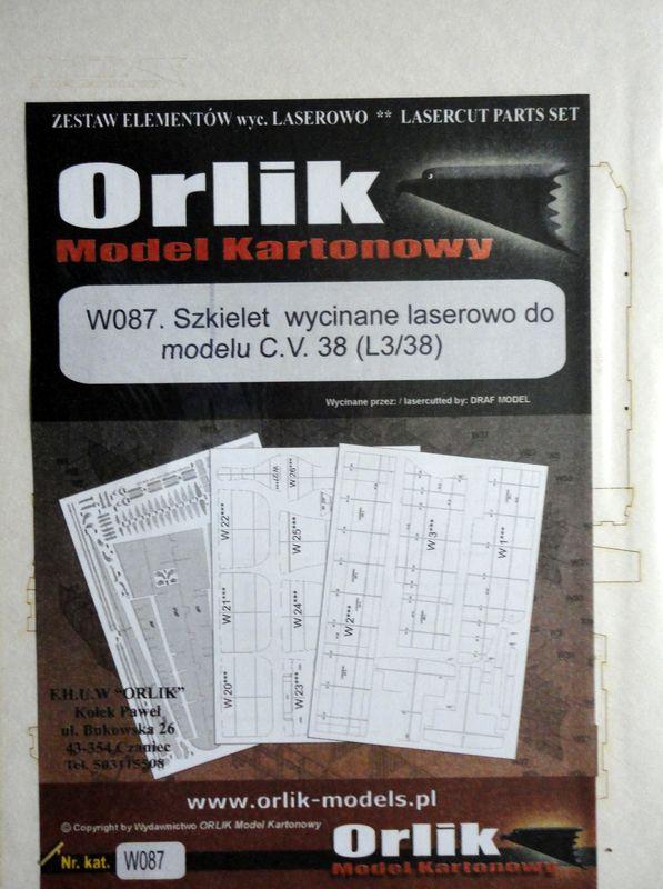 резка     *    W087. Szkielet wycinane laserowo do modelu C.V.38 (L3/38)  *  Orlik